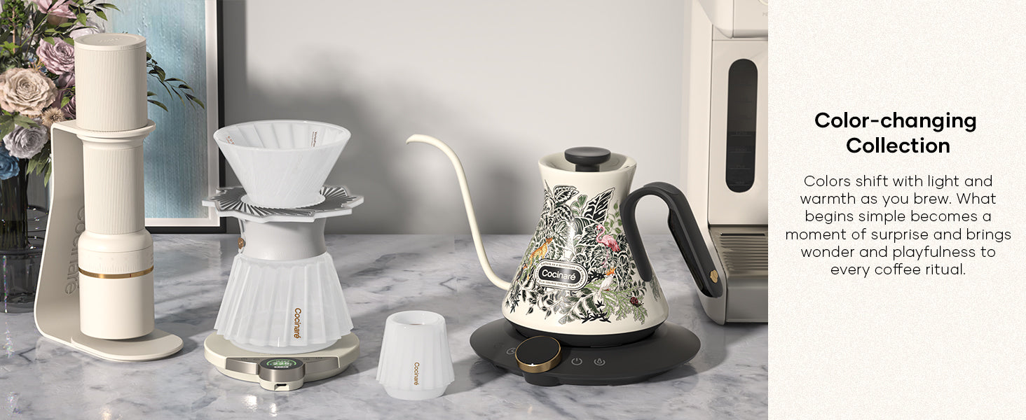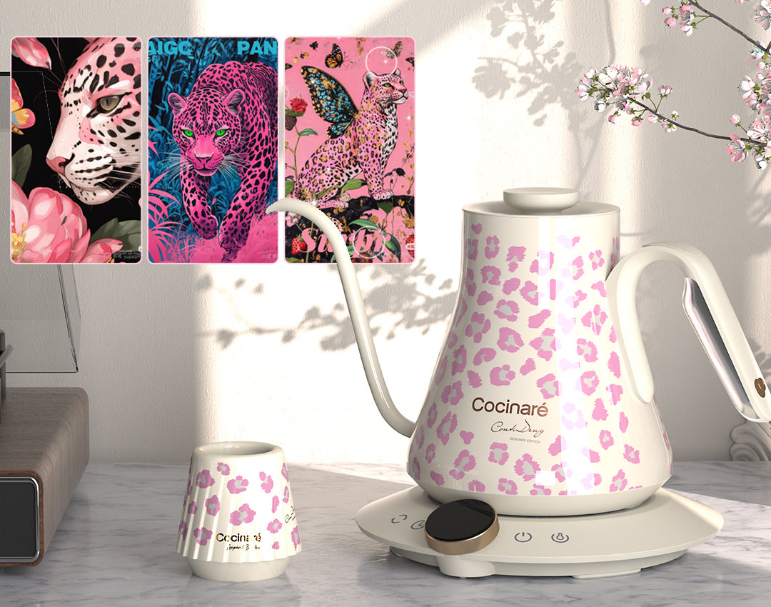 Designed with thermochromic leopard patterns, this kettle transforms with heat—turning every pour into a moment of color and expression.