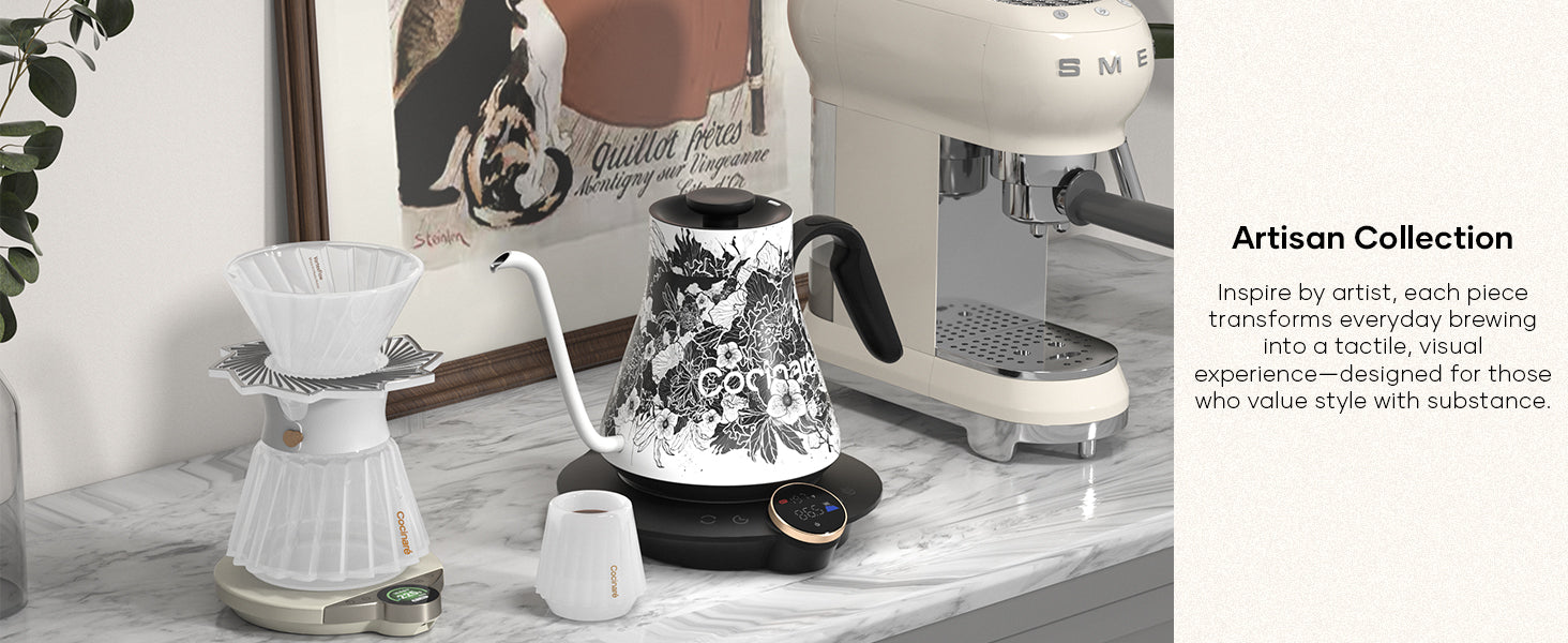 Limited Collector’s Edition: Each kettle comes with an individual serial number and Chanoir-signed certificate, packaged in an exclusive art box - a piece for both coffee lovers and art collectors.