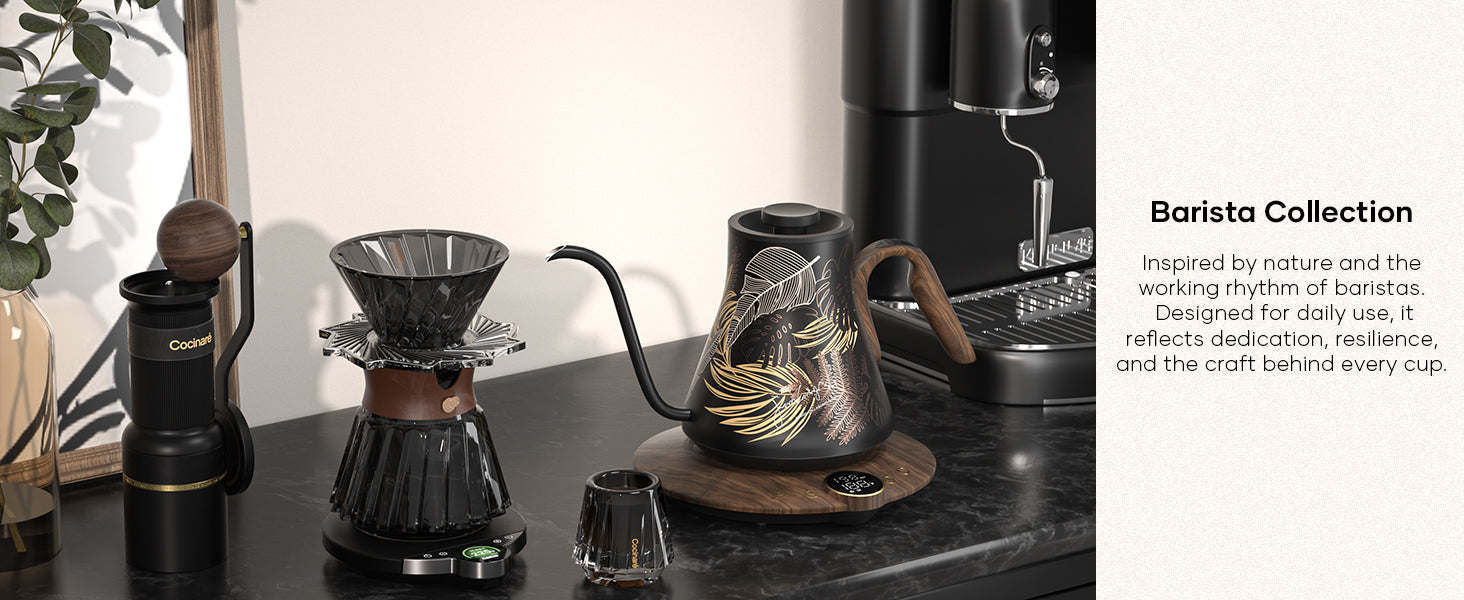 The M9 Pro combines precise temperature control with artistic design. It heats quickly, maintains stable temperatures, and offers exceptional pouring balance — all in a lightweight, beautifully crafted body.