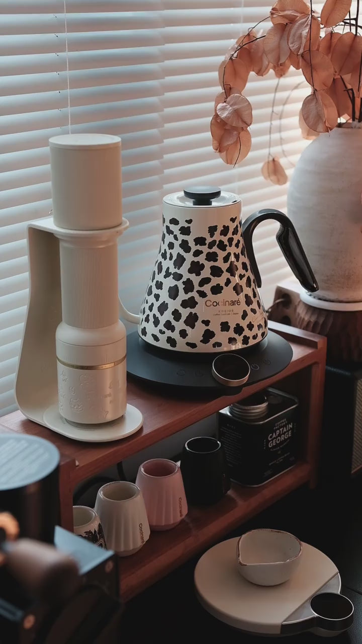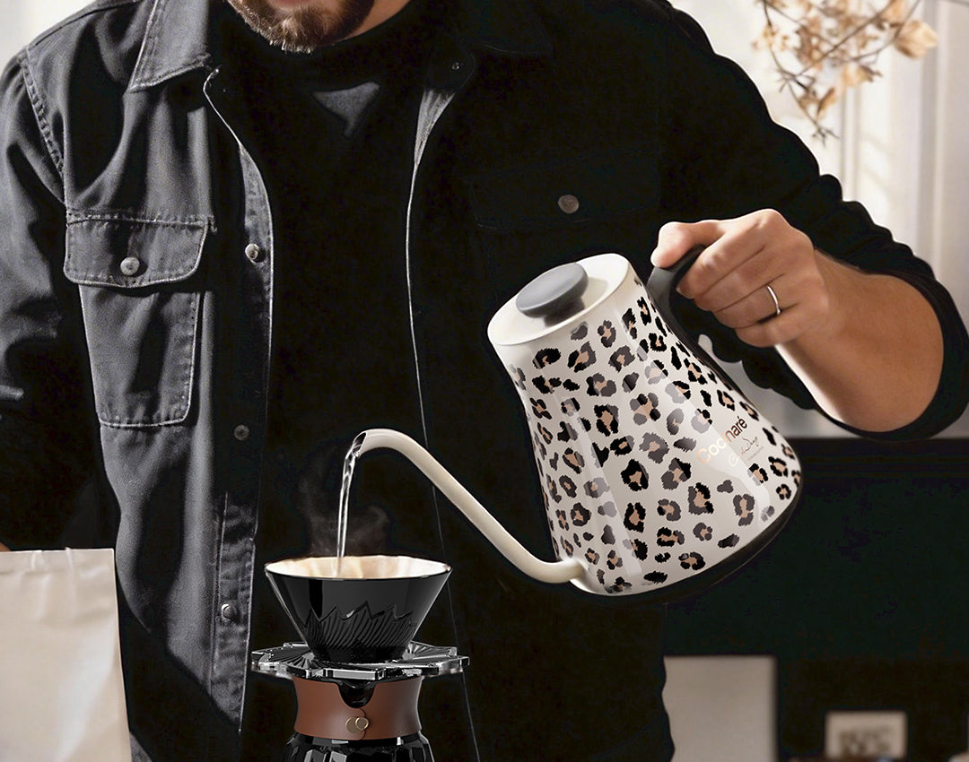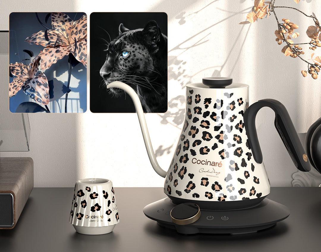 Designed with heat-activated leopard patterns, this kettle reveals its texture as you brew—turning every pour into a controlled display of precision and flow.